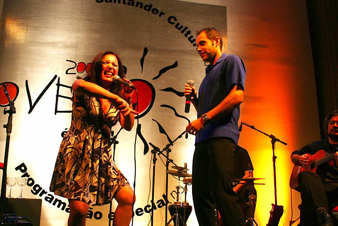 Clarisse Abujamra e Carlos Navas dividem o palco desde 2000, quando estrearam “Por um Triz”. Um encontro de emoção e interpretação delicado, intenso e interativo, entre uma das nossas mais respeitadas atrizes e um dos mais expressivos intérpretes da nova música brasileira. Clarisse recita a palavra, conferindo-lhe densidade atemporal, a surpresa do gesto, a técnica que a consagrou. A voz de Carlos Navas é o veículo ideal para a manifestação da palavra cantada. Juntos em cena, transformam-se no instrumento da canção e do poema. O espetáculo transcende os limites de mero recital. A tônica é a palavra, essência da poesia e da canção de amor.