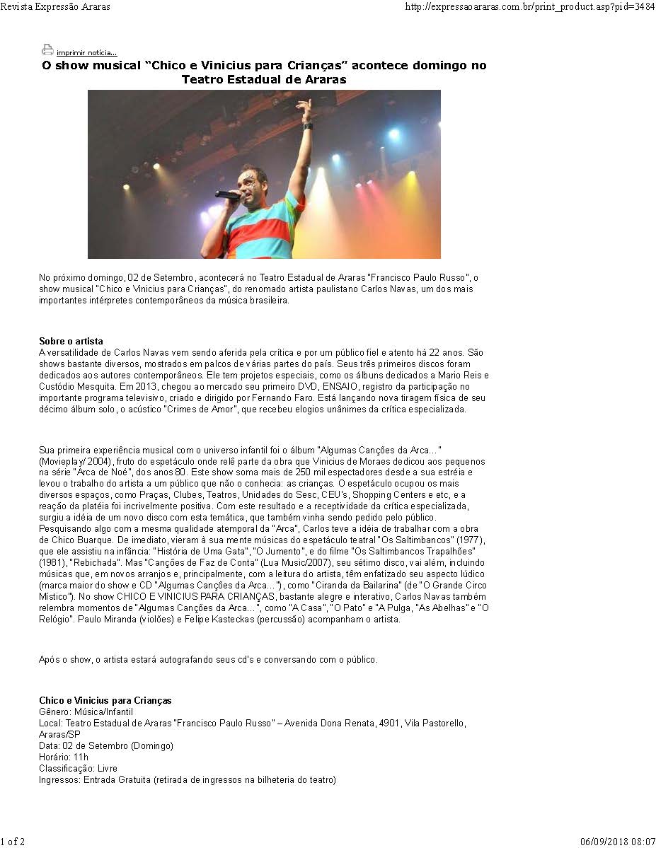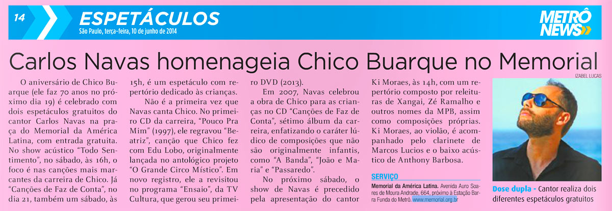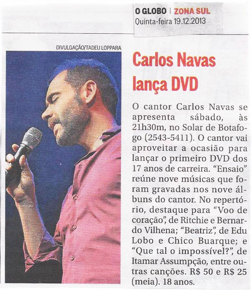 Ricardo Henrique: 11 9 9196 4836 - assessoria@carlosnavas.com.br